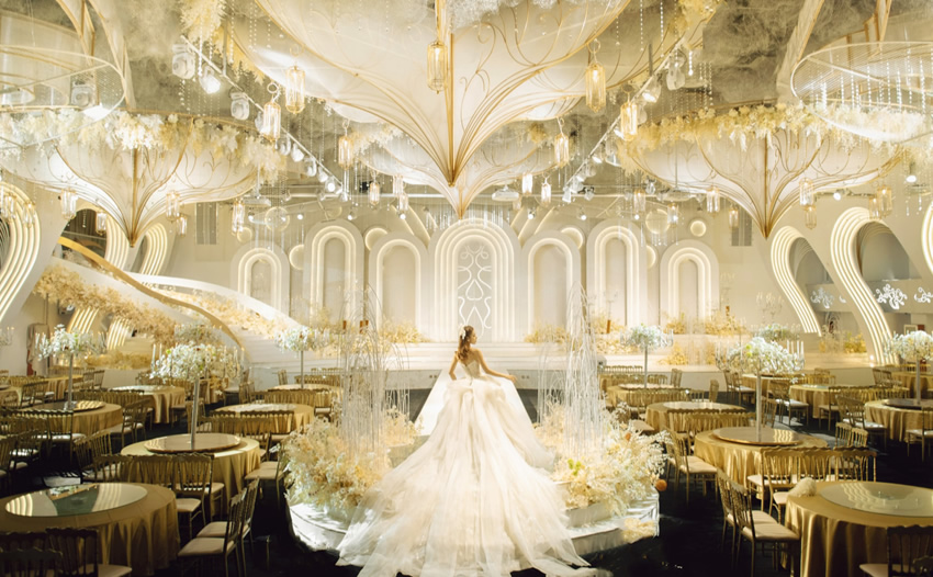 首先,简约是现代婚礼堂设计理念的主要趋势。简约并不意味着简单,而是通过简化线条、色彩和装饰元素,达到一种简洁而富有深度的美感。简约的设计可以让婚礼堂看起来更加干净利落,同时也更能体现出新人的个性和品味。